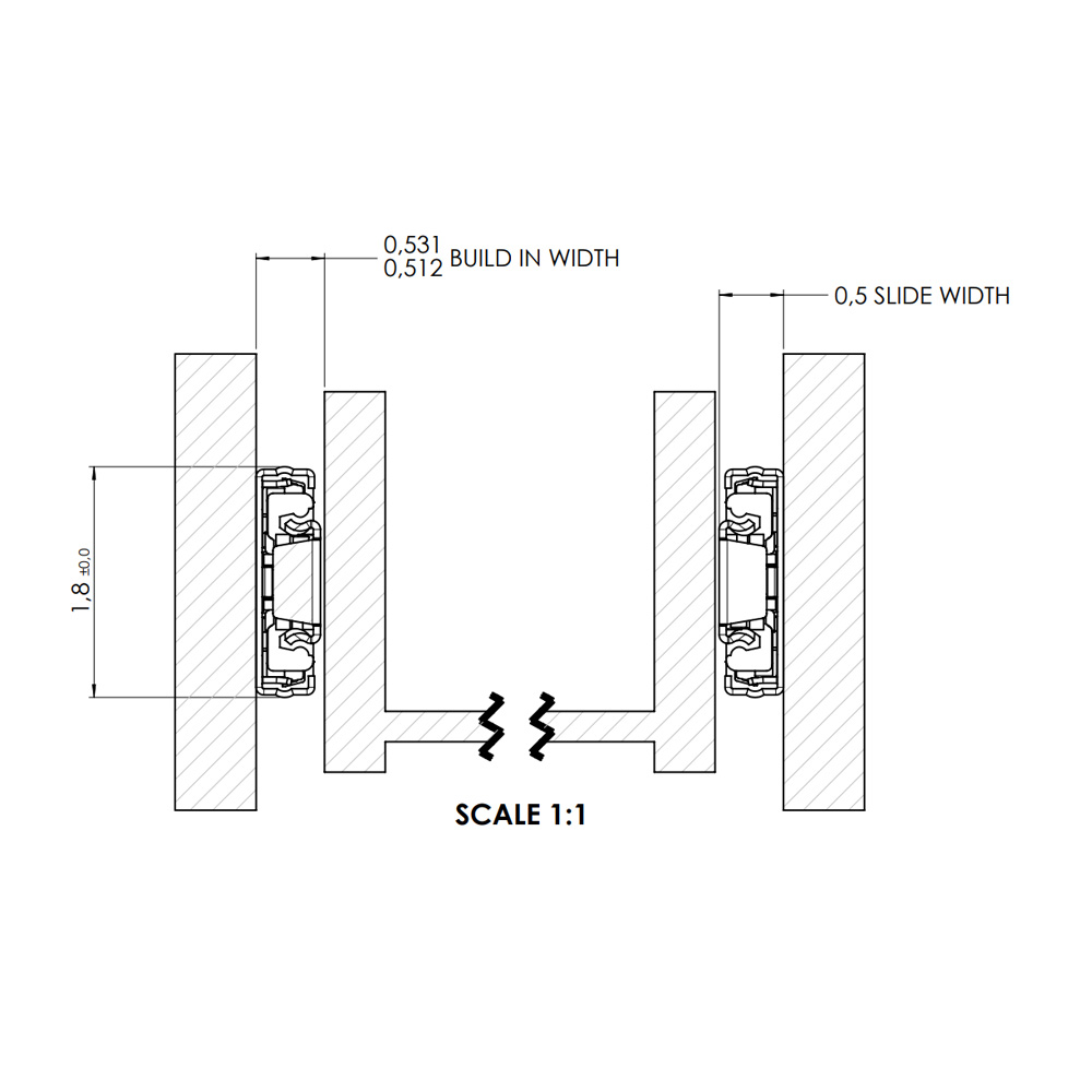 Our 5/8″ maple drawer box width should be [cabinet opening minus 1″] when used with these slides.